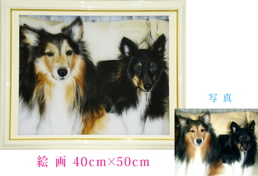 宝石絵画は天然の宝石を細かくし積み重ねて作られます。 そのため、写真にはない立体感が表現されます。 宝石絵画のわんちゃんがまるで生きているように感じられるのはそのせいかもしれません。 また、照明によりキラキラと柔らかく輝くのが特徴です。 お客様からは次のようなお声を頂いています。 「絵から飛び出てきそうです」 「奥行きがあり立体的に感じます」 「写真とは違う温かみがあります」 「いつもずっと見ています」 「宝物になりました」